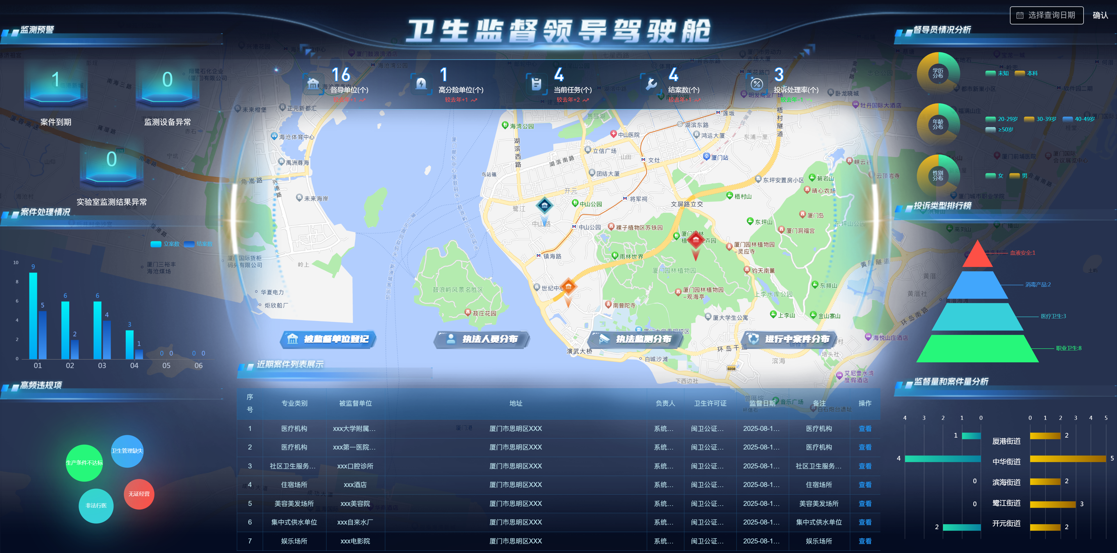 “智慧衛(wèi)監(jiān)綜合監(jiān)管服務管理系統(tǒng)”涵蓋監(jiān)督執(zhí)法應用、非現(xiàn)場執(zhí)法應用、碼上監(jiān)管、可視化駕駛艙、信息交換系統(tǒng)等內(nèi)容,實現(xiàn)加強衛(wèi)生監(jiān)督綜合執(zhí)法能力建設,依法推進衛(wèi)生監(jiān)督工作,不斷創(chuàng)新衛(wèi)生監(jiān)督執(zhí)法手段,提高衛(wèi)生監(jiān)督的監(jiān)管和應急處置水平,通過建設智慧衛(wèi)監(jiān)系統(tǒng),將傳統(tǒng)現(xiàn)場監(jiān)管與非現(xiàn)場物聯(lián)網(wǎng)智能監(jiān)督監(jiān)測手段相結(jié)合,解決目前衛(wèi)生監(jiān)督機構(gòu)無法及時掌握和處置突發(fā)狀況的問題,做到在第一時間獲取現(xiàn)場數(shù)據(jù),在事件發(fā)生、升級前提前預警和處置,提高執(zhí)法效率。